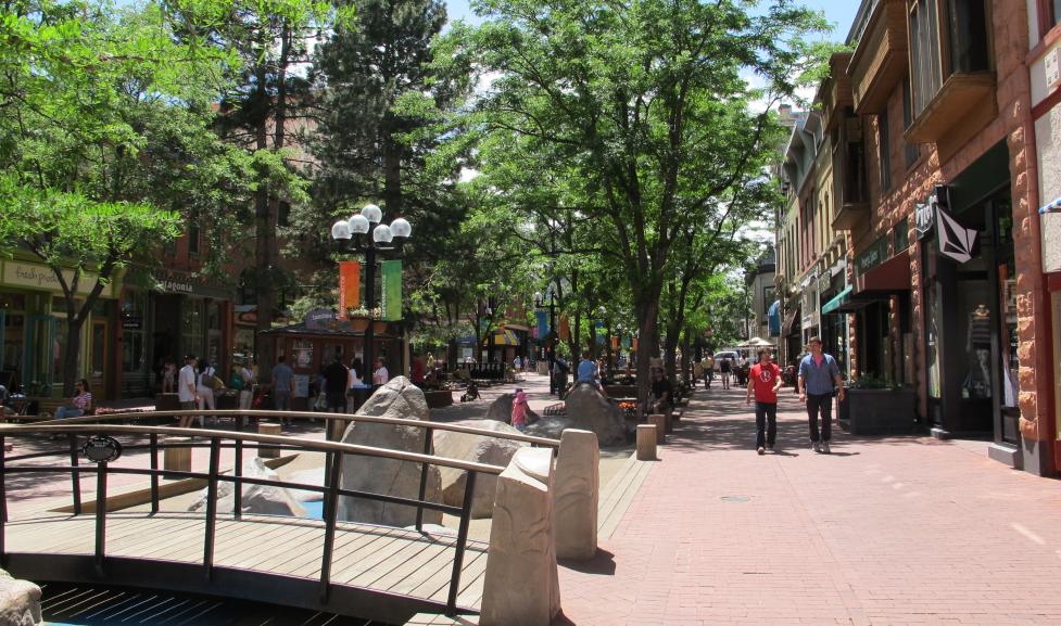 When was Pearl Street officially designated as the “Downtown Boulder Mall,” closing the street to cars and making way for its pedestrian-friendly charm?
